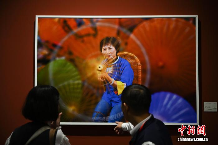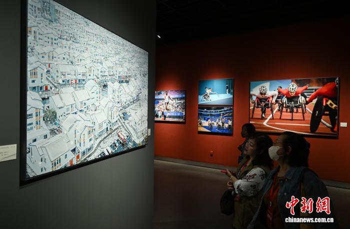 10月31日,展出的摄影作品吸引参观者。当日,第三届海峡两岸中华摄影奖暨第六届海峡两岸影像文化周在浙江杭州启幕,本次活动以“打造摄影的中华语境,传播摄影的中华语言”为宗旨,250余位两岸摄影界代表汇聚一堂,在光影中共赏中华之美、共叙血脉亲情。中新社记者 王刚 摄