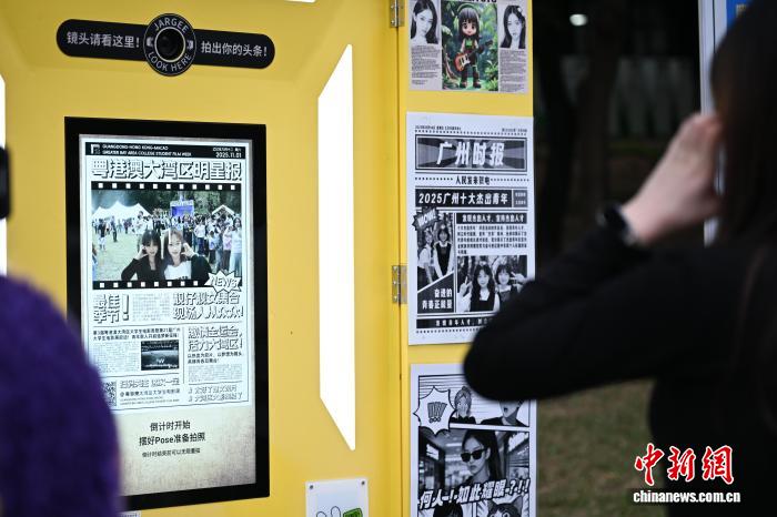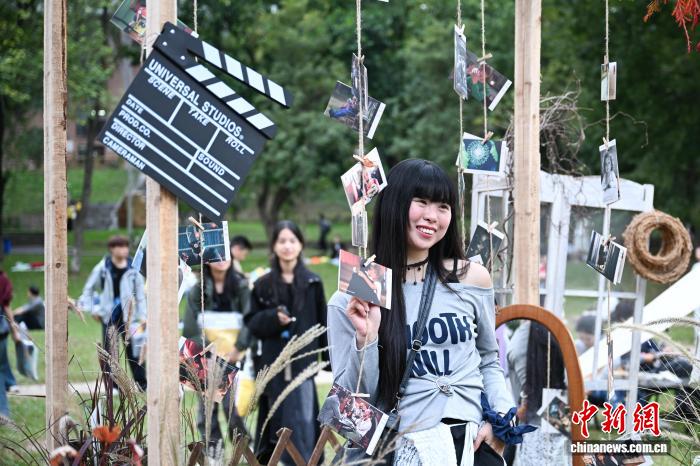 11月1日,第3届粤港澳大湾区大学生电影周暨第21届广州大学生电影展“晚风FUN映”电影之夜在位于广州市的华南农业大学举办。图为互动拍照点吸引学生体验。中新社记者 陈楚红 摄
