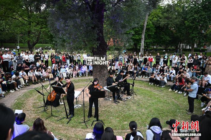 11月1日,第3届粤港澳大湾区大学生电影周暨第21届广州大学生电影展“晚风FUN映”电影之夜在位于广州市的华南农业大学举办。图为音乐演出吸引民众。中新社记者 陈楚红 摄