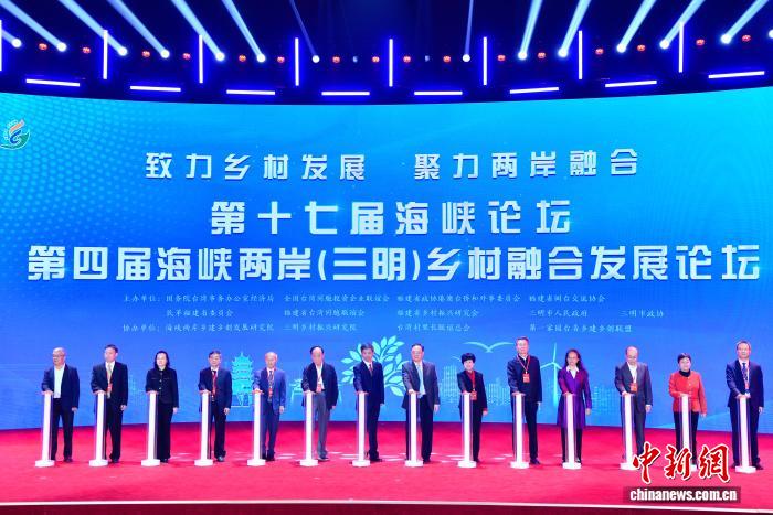 中新社福建三明11月6日电 (雷朝良)第十七届海峡论坛·第四届海峡两岸(三明)乡村融合发展论坛于6日在福建省三明市开幕。来自台湾的400余位嘉宾与会,共同探寻两岸乡村融合发展的新路径与新机制。