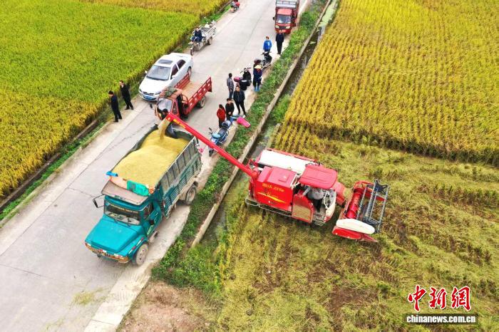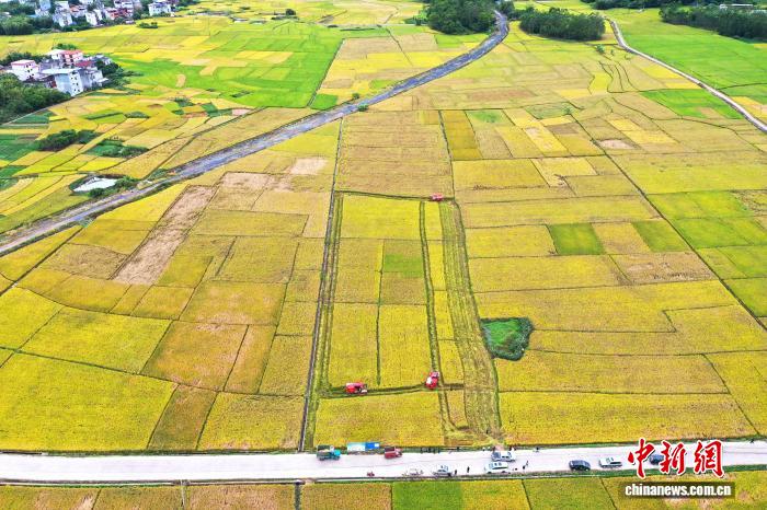 近日,广西贵港市平南县42万亩晚稻迎来丰收,各地晚稻陆续开镰收割。在平南县官成镇双马村,收割机穿梭在稻田之间,将饱满的稻穗卷入腹中,脱粒、清选一气呵成,一幅科技赋能现代农业的丰收画卷徐徐展开。近年来,平南县集成推广一批水稻增产增效技术,全力推进水稻大面积单产提升。图为晚稻收割现场。平南县融媒体中心 供图