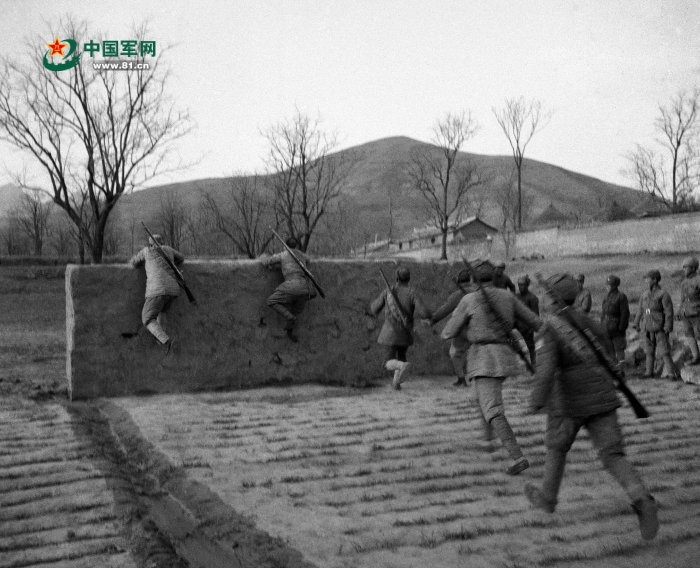 抗战期间,新四军某部进行山地进攻战斗训练。