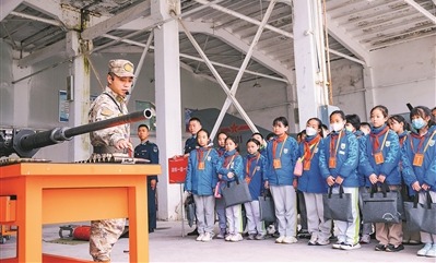 十一月七日,陕西省第四届军营开放活动在空军工程大学举行。图为讲解员向前来参观的学生介绍机载武器。李晨昕摄